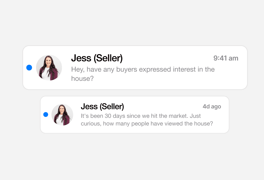 Easy-peasy and real-time updates so your Seller remains informed right along side you.